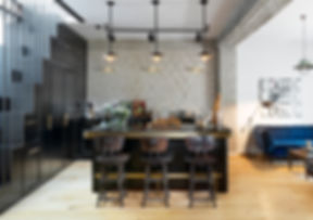 We have chosen to surface the rest of the walls of the store in an industrial manner and look: bricks, Terrazzo floor all over the store and iron stands which are coming down directly from the original ceiling.